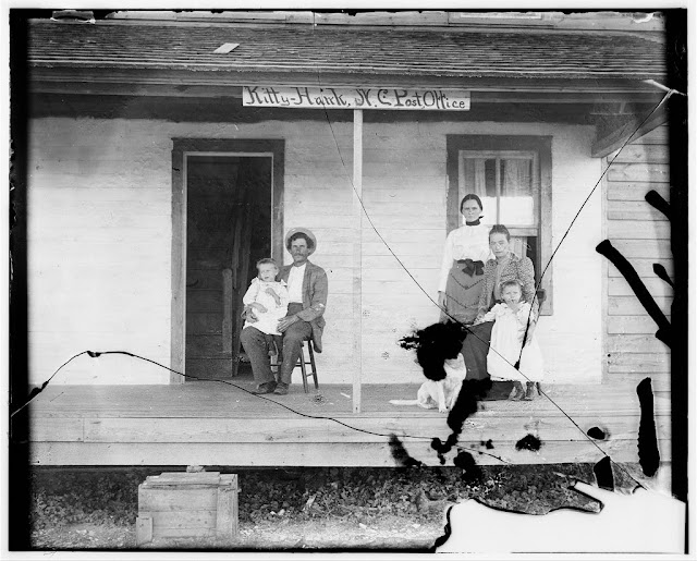 Captain William J. Tate, the Wrights' first host in Kitty Hawk, and family on porch of their home, the Kitty Hawk Post Office